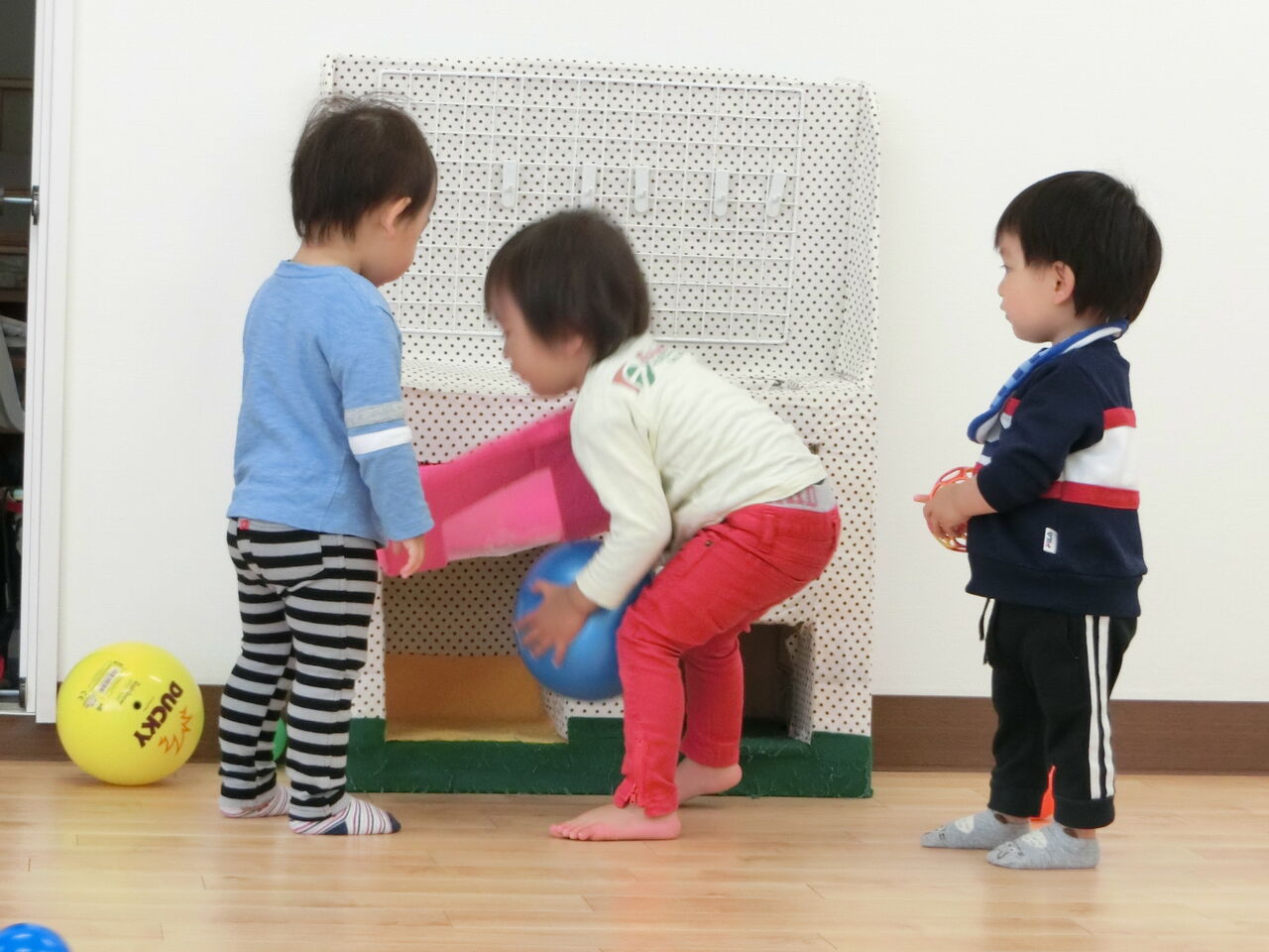 新しいお友達もボールで元気いっぱい遊んだよ