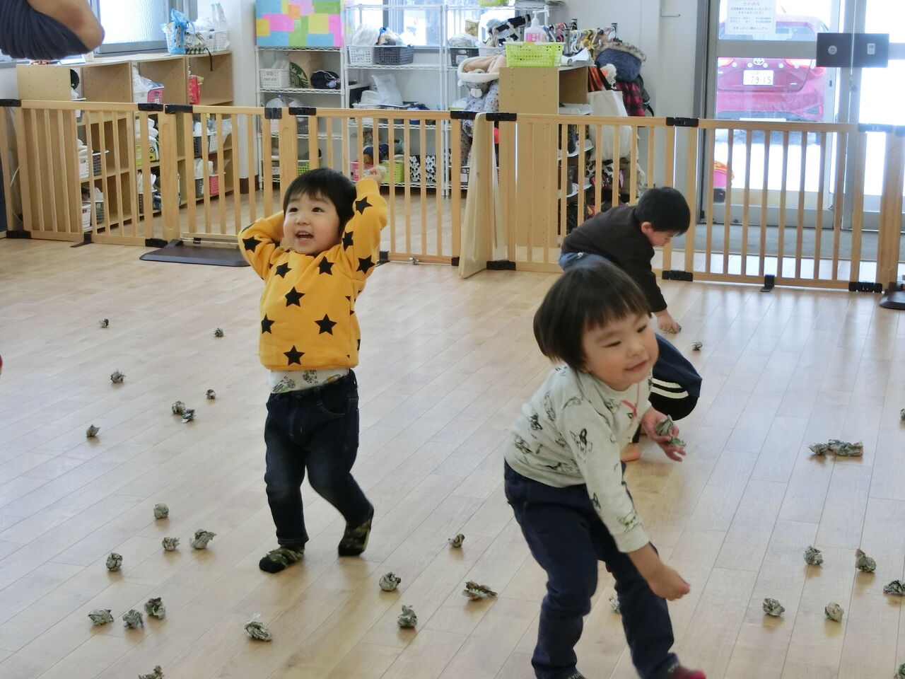 たくさん出来たので早速豆まきの練習です