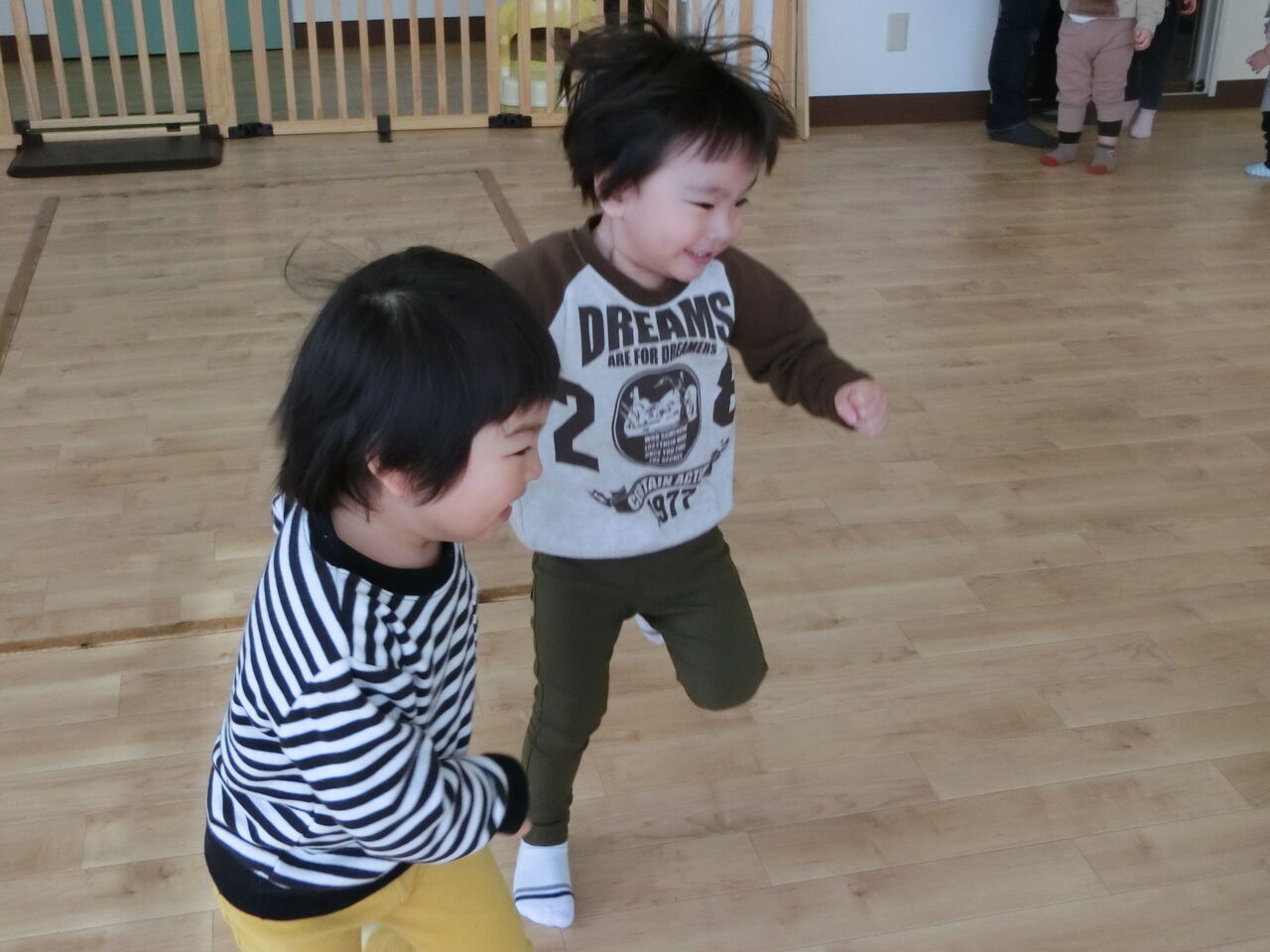 手をつないで走ったり、止まったり!
