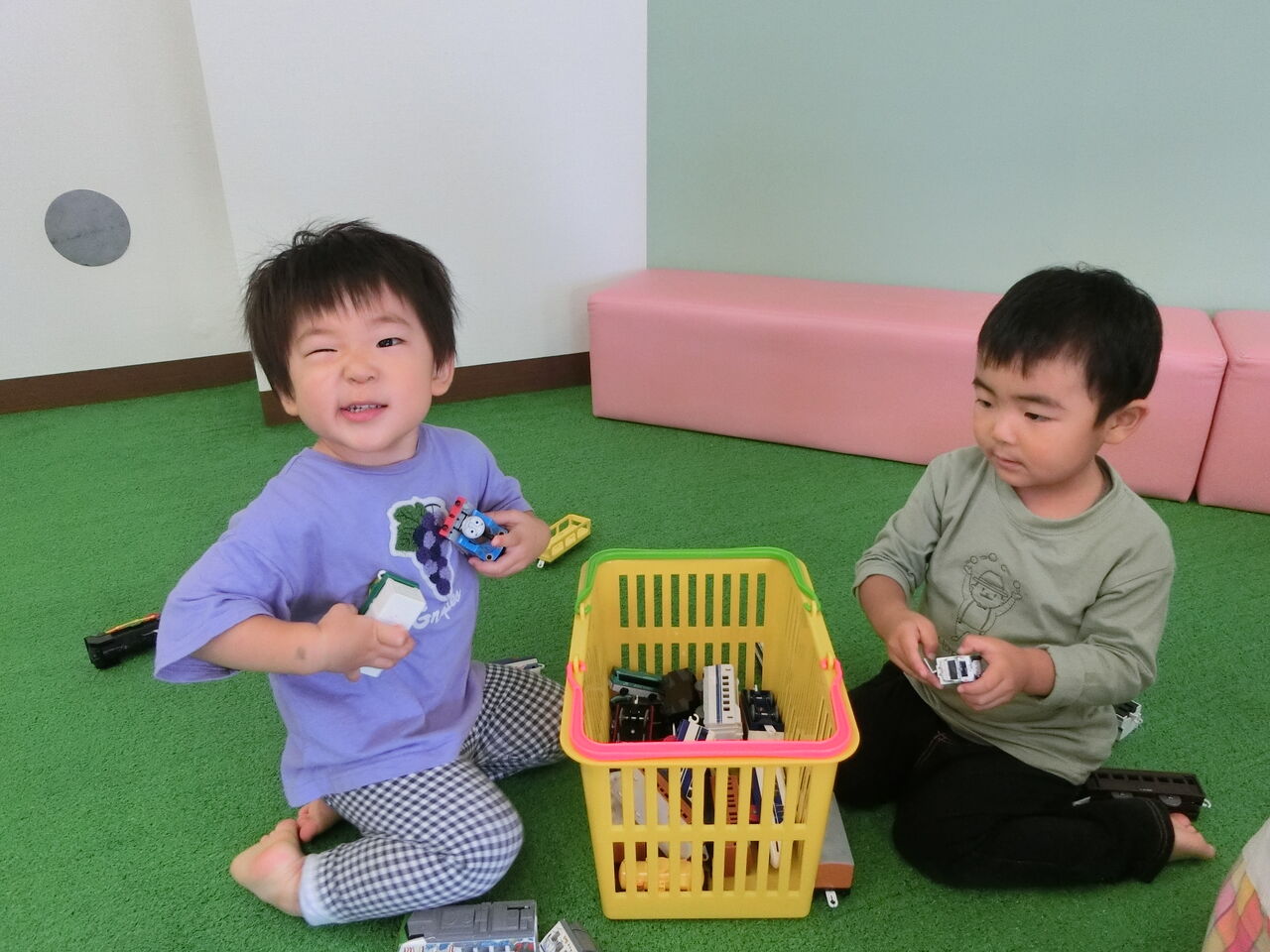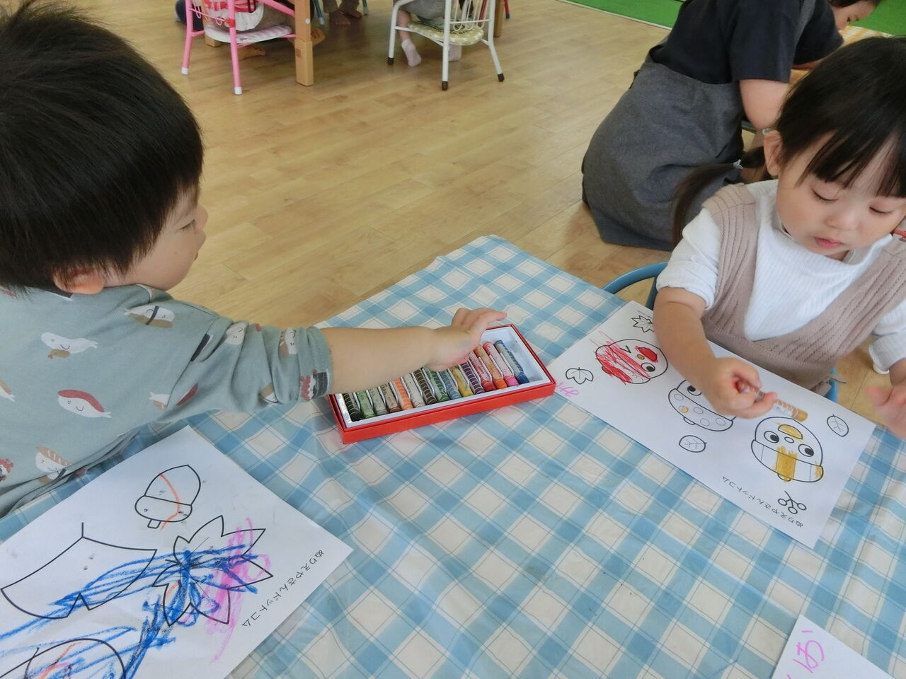 お友だちはくじを引き、お菓子や折り紙など当たりました!!